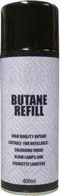 Butane Gas Suitable for refillable soldering irons, blow lamps & cigarette lighters Flammable 400ml
