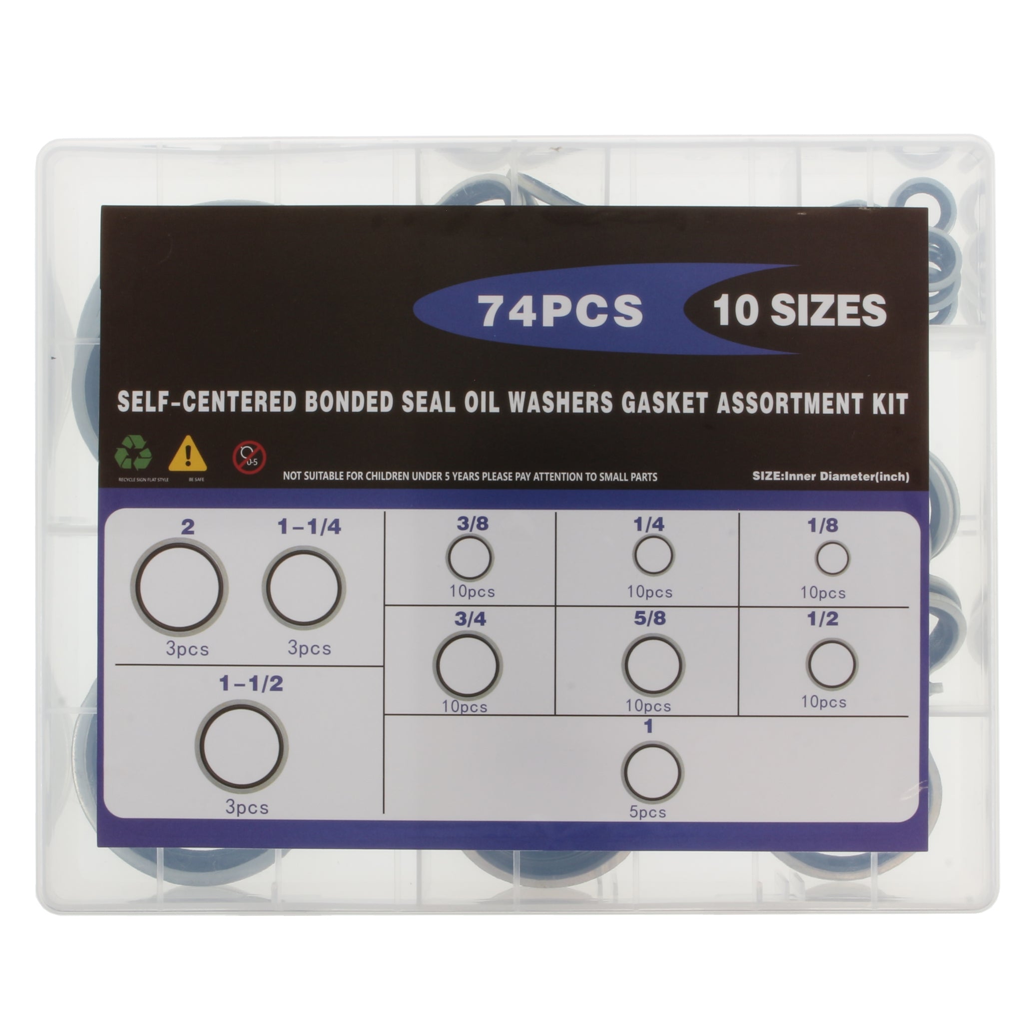 - Assortment: 1/8" - 2" (Qty 74)
