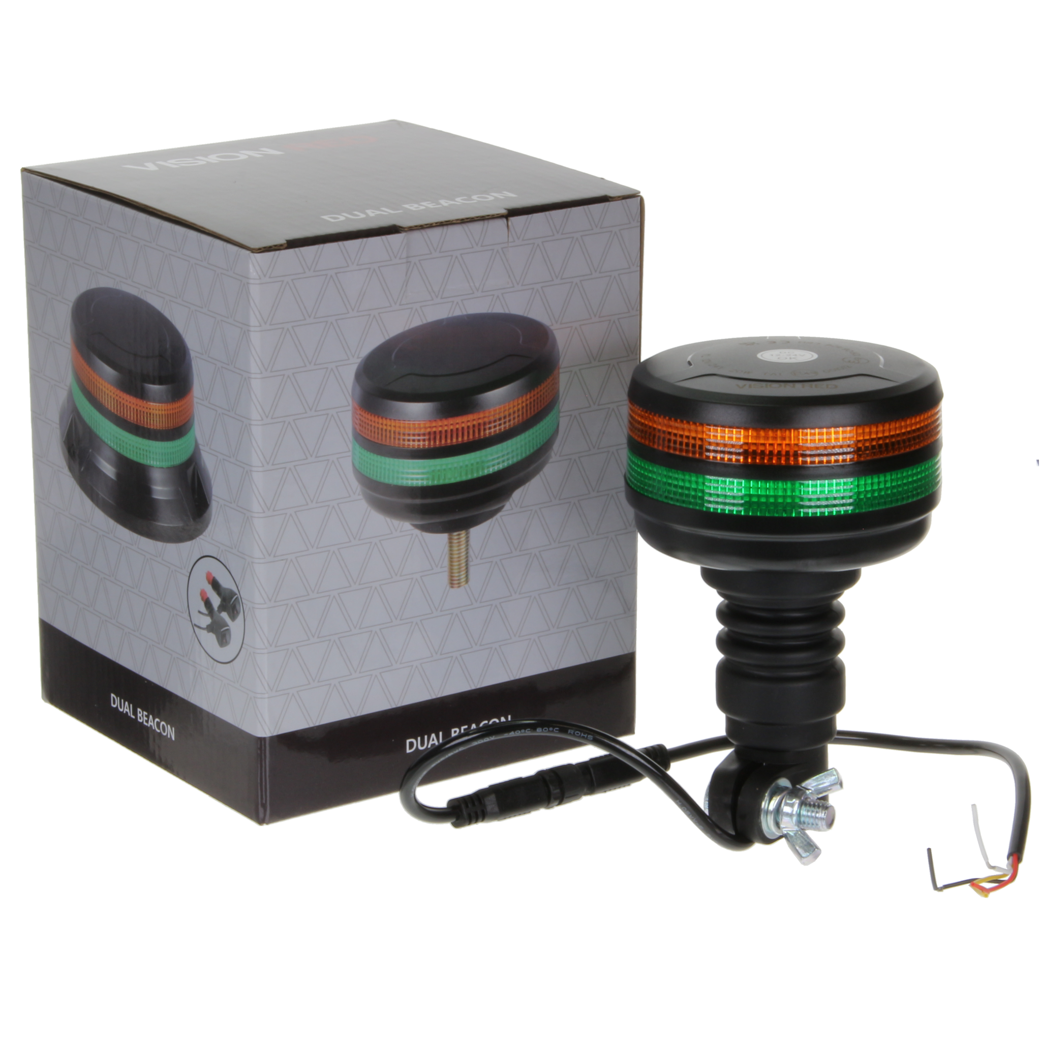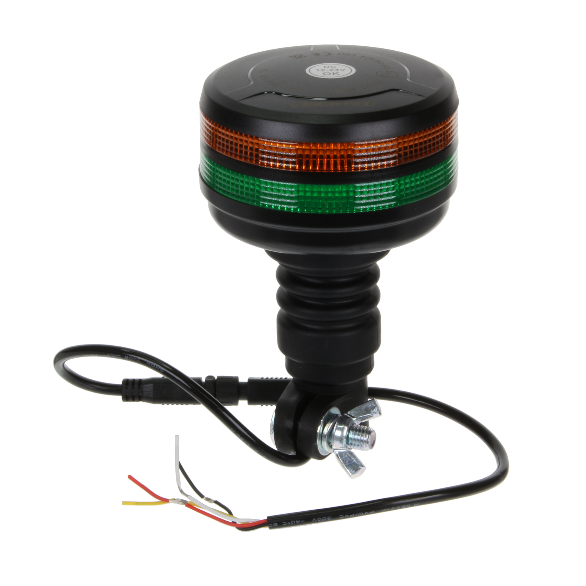 Vision Red Dual Lens Flexible Stem / Pole Mount LED Beacon - Amber/Green