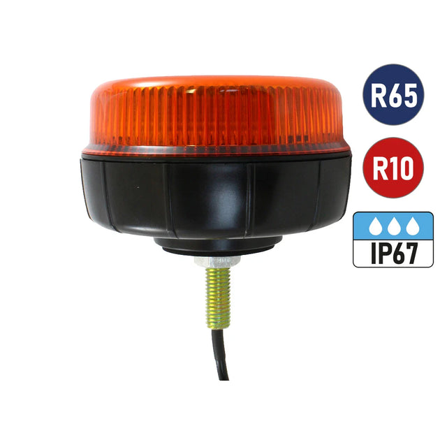 Features: Ultra Low Profile Dual Voltage 12/24V -30C to +50C Operating Range 3 Selectable Flash Patterns (Rotating, Six Flash, Dual Flash) 70mph Rating Standards: R65 R10 IP67